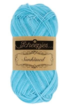 The natural, sun-bleached and weathered shades of Scheepjes Sunkissed make this yarn a perfect choice for summer wear and accessories that you’ll love taking to the beach! The light Fingering weight of this yarn makes it perfect for knitted or crocheted lacework, filet crochet technique or any other project calling for a soft drape and breathability. Being EN71-3 certified, Sunkissed is safe to use by those with a sensitive touch such as babies or children, making it a perfect choice for cosy blankets, amigurumi or home decor. Not to mention that this yarn is produced using recycled waste water, offering a more sustainable choice for eco conscious crafters. Scheepjes Sunkissed is made from 100% Cotton, and is sold as 50g balls holding 170 metres of yarn. The recommended needle/hook size is 3.00mm. Available in a range of beautiful colours. Supplied per 1 ball.